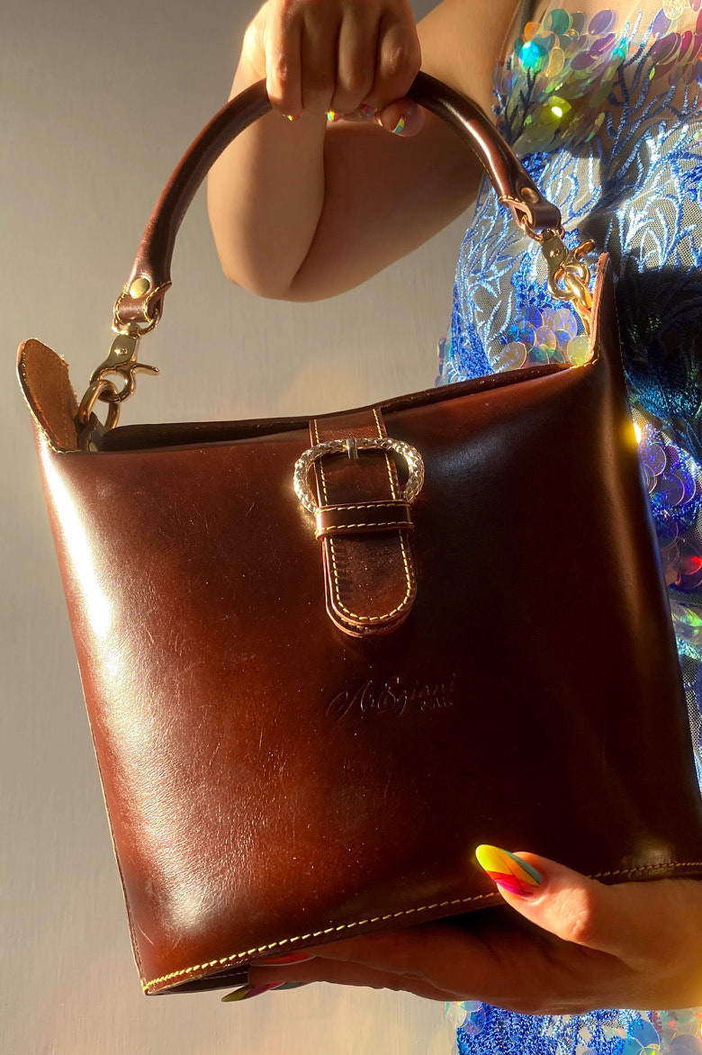 Borsa Tolfa unisex Marrone cuciture a mano con tracolla regolabile