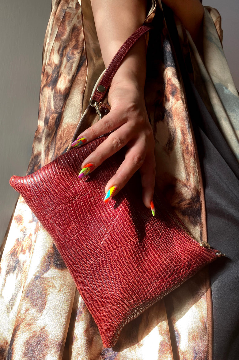 PORTAFOGLIO borgogna e fascia rosso saffiano riflessi oro pezzo unico